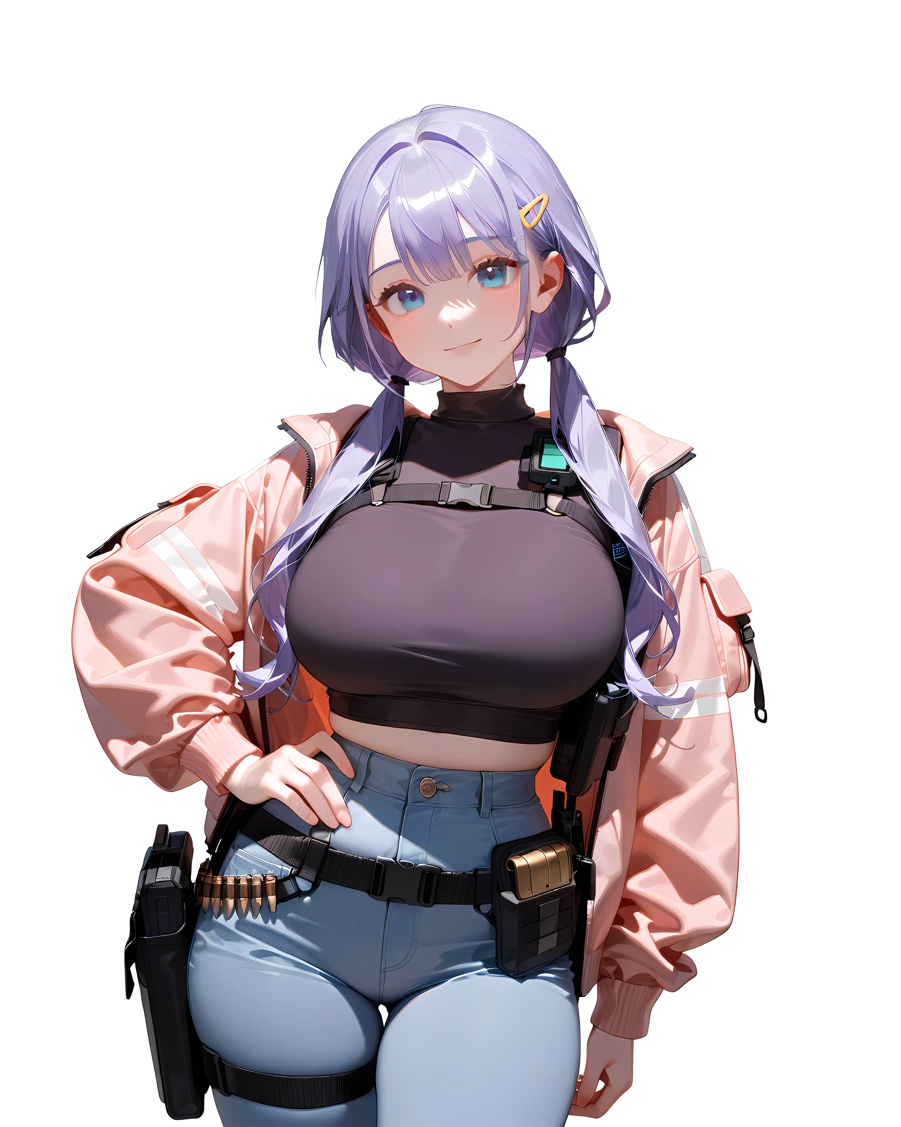 외투 속 하네스에 쌍권총을 상시 숨겨 두어 은밀한 신속 대응과 빠른